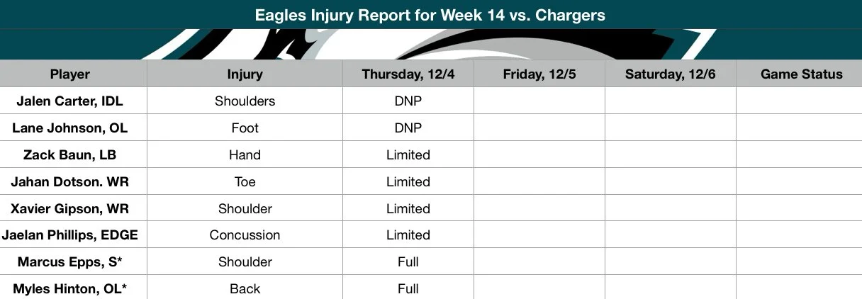 Eagles Injury Report