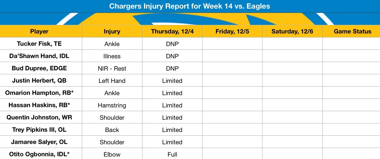 Chargers Injury Report