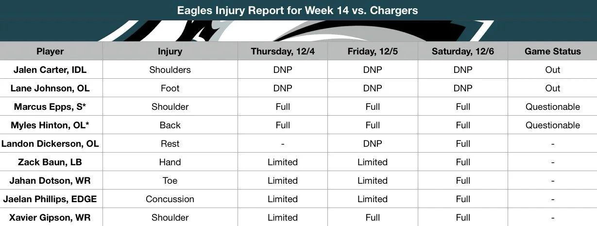 Eagles-Chargers Week 14 Injury Report: Who Is Playing in Los Angeles?
