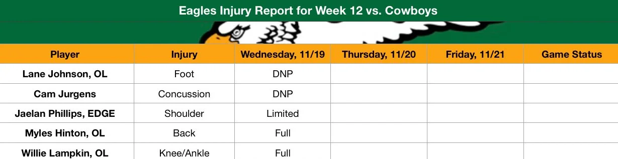 Eagles-Cowboys Week 12 Injury Report: Who Is Playing in Dallas?