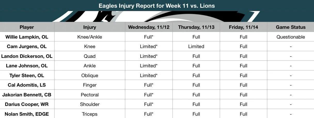 Eagles-Lions Week 11 Injury Report: Who Is Playing in Philadelphia?