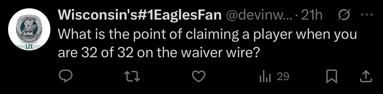 When a NFL team claims a player on waivers, they are taking on their existing contract. The idea of acquiring a young player on a cost-effective contract is often enticing to teams around the league, especially the Eagles.