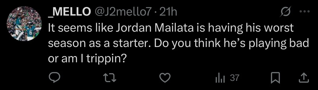 Your eyes aren’t deceiving you, Jordan Mailata has certainly struggled this season. While he is still playing well overall, Mailata isn’t playing at the All-Pro level that he did last season as Philadelphia’s starting left tackle.