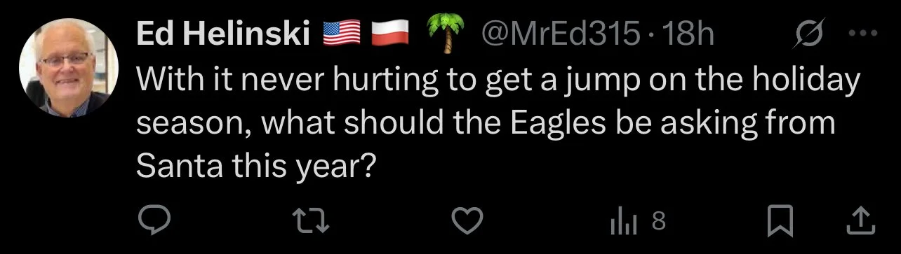 If the Eagles can have all five of their starting offensive linemen healthy, I believe that would go a long way in fixing the offense’s struggles. We’ll see if Philadelphia lands on the naughty list or the nice list though.