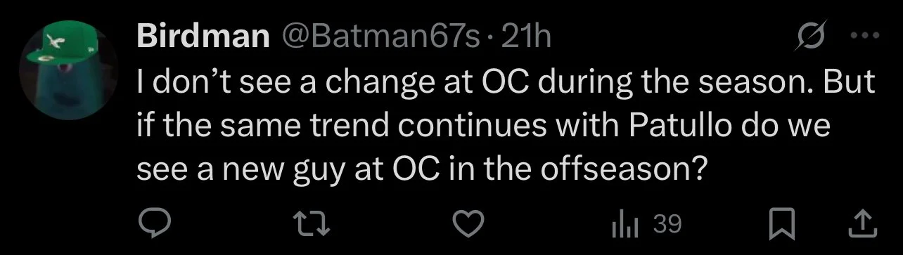 I agree with you regarding a midseason change at offensive coordinator. Patullo is close with Nick Sirianni and I can’t see him being demoted or fired midseason, especially with the Eagles atop the NFC.