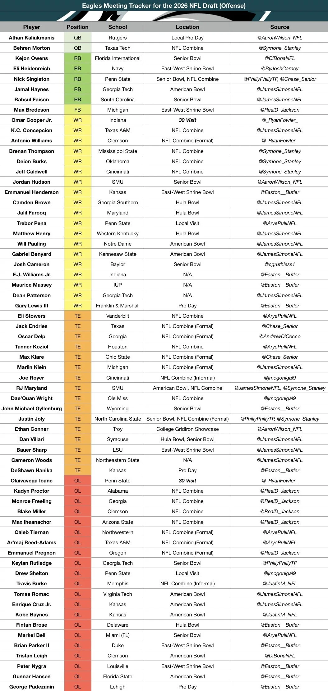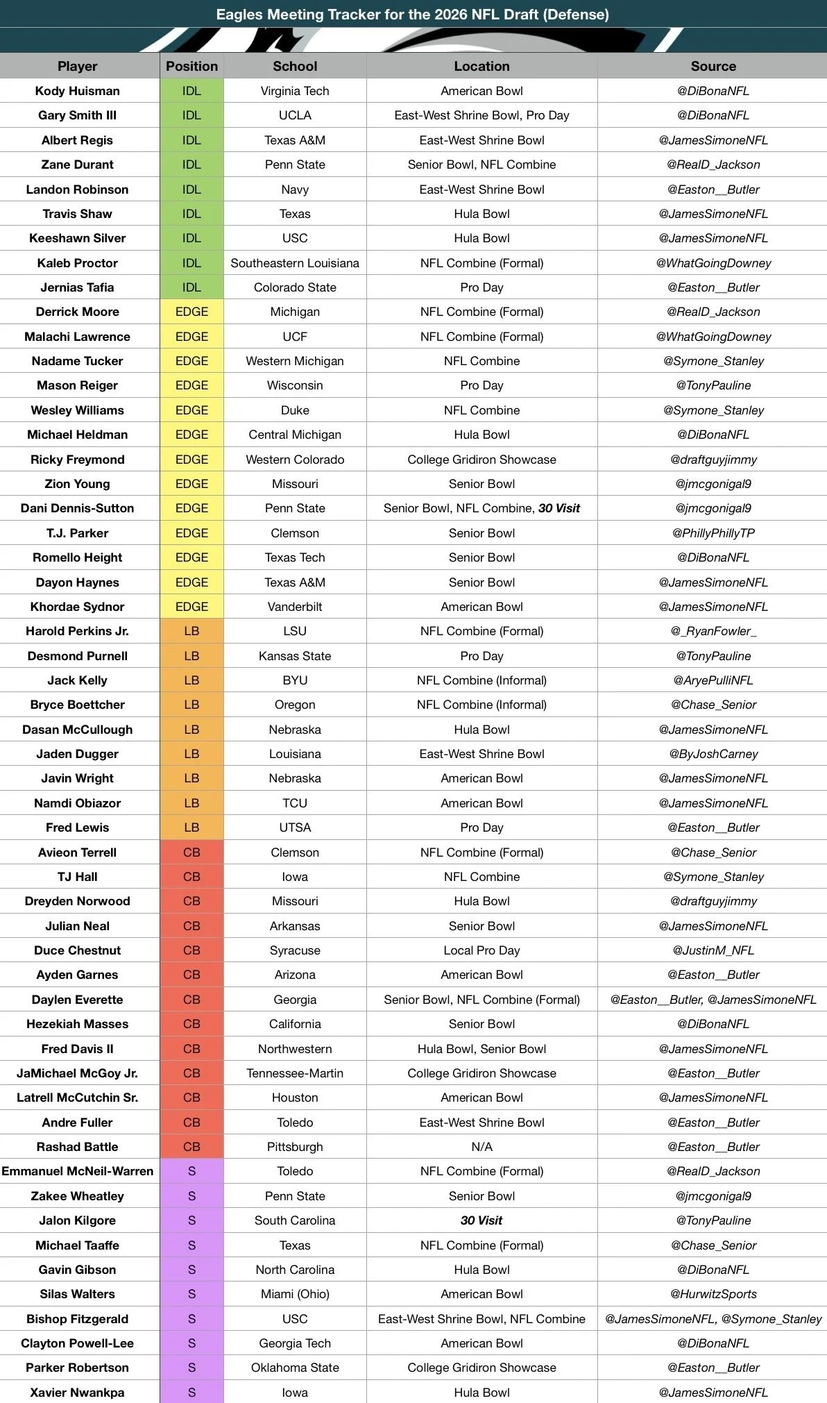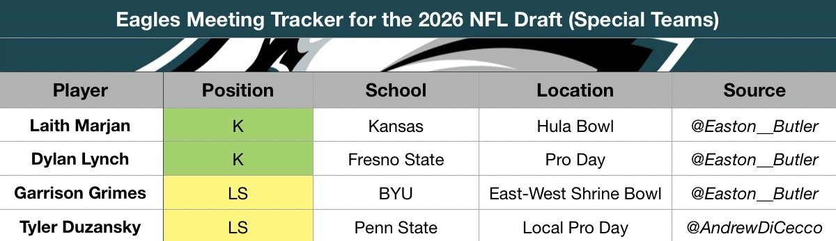 Eagles Meeting Tracker for the 2026 NFL Draft