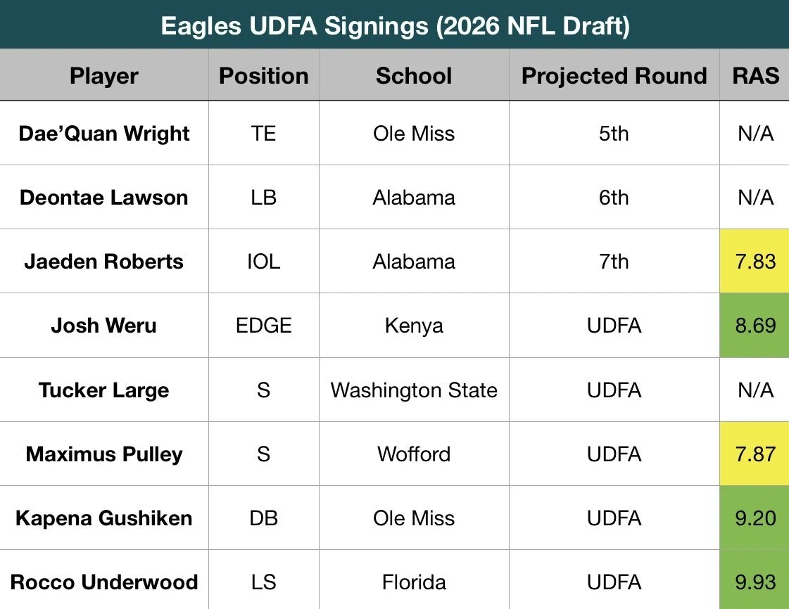 Eagles UDFA Signing Tracker for the 2026 NFL Draft
